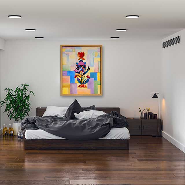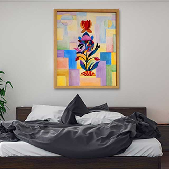 Displaying dynamic Interplay of colorful, hazy patchwork through crisp shapes. Can be displayed separately or in tandem.